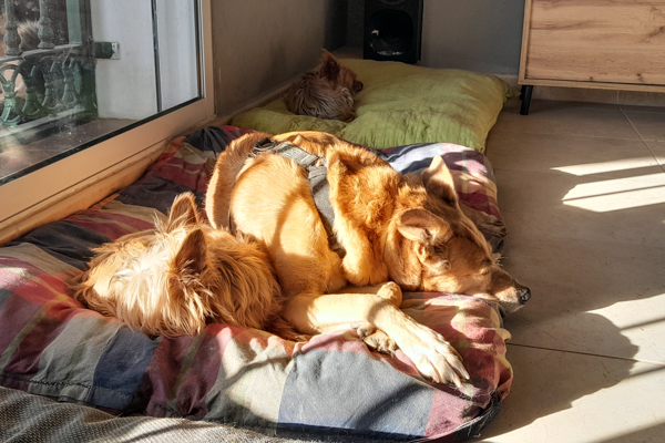 Dependiendo de la personalidad de cada perro, hay familias que prefieren que descansen en manada, otras que prefieren que descansen de forma individual, otras que, como nos dejan a varios perros del mismo hogar, prefieren que compartan una habitación juntos y sin perros externos… Nuestra máxima prioridad es que los perros se sientan cómodos en todo momento, por lo que siempre procuramos realizar la mejor distribución posible de las zonas de descanso para tal fin, teniendo en cuenta las compatibilidades y sensibilidades de cada uno. Disponemos de cámaras de vigilancia para tenerlos supervisados en todo momento.