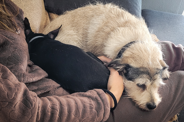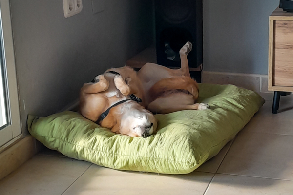 Recomendamos encarecidamente esta opción cuando el perro tiene alguna patología y necesita de supervisión, cuando son mayores, cuando son sensibles e inseguros… Esta opción es la única posible si el perro no sabe descansar tranquilo sin compañía del ser humano.